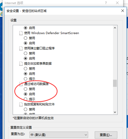 A:工具→Internet選項→安全→自定義級別→啟用“通過域訪問數據源”