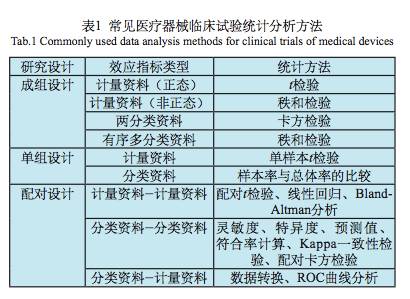 醫療器械的門類、功效非常多,為應對特定醫療器械的功效,應根據產品特點進行相應的科學設計,統計分析方法需結合研究設計類型和資料特征進行選擇。
